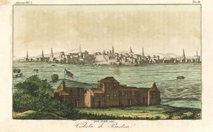 Gesamtansicht (‘Veduta di Boston.’), altkolorierte Aquatinta v. Spirito Batelli, um 1820, 11,5 x 17 cm
