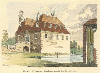 Kleeburg (‘Weidesheim. Kleeburg, Ansicht des Herrenhauses.’), kolorierter Holzstich, 1897, 8,5 x 12 cm