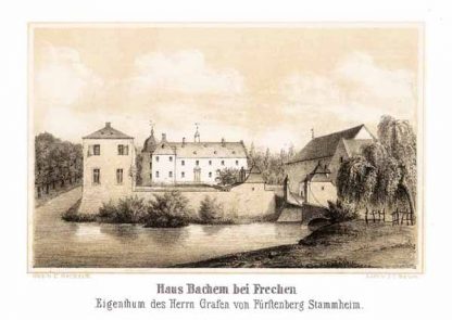 Haus Bachem (‘Haus Bachem bei Frechen Eigenthum des Herrn Grafen von Fürstenberg Stammheim’), getönte Lithographie v. J.C. Baum n. C. Beckers, 1855, 12 x 16,5 cm