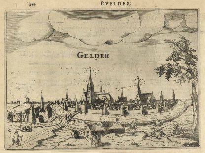 Gesamtansicht von Südwesten (‘Gelder – Guelder’), Kupferstich v. Pieter van de Keere b. Lodovico Guicciardini, 1641, 14,5 x 19,5 cm