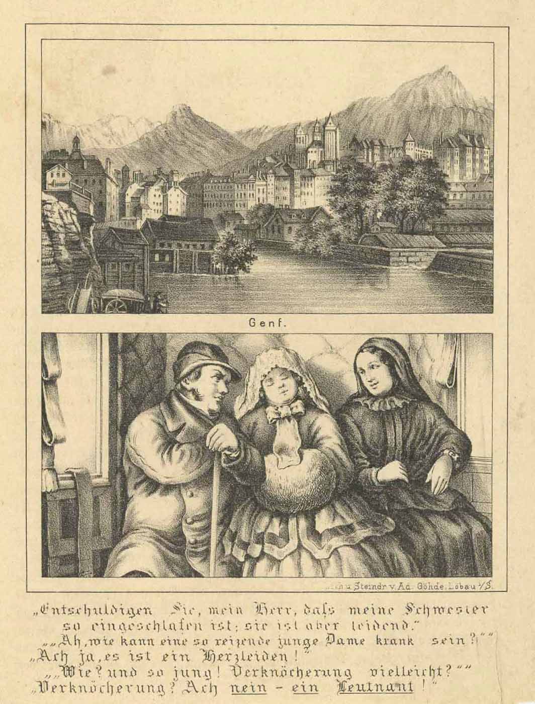 Gesamtansicht (‘Genf.’), Lithographie v. Ad. Göhde in Löbau aus Zittausches monatliches Tagebuch, um 1870, 17 x 12 cm