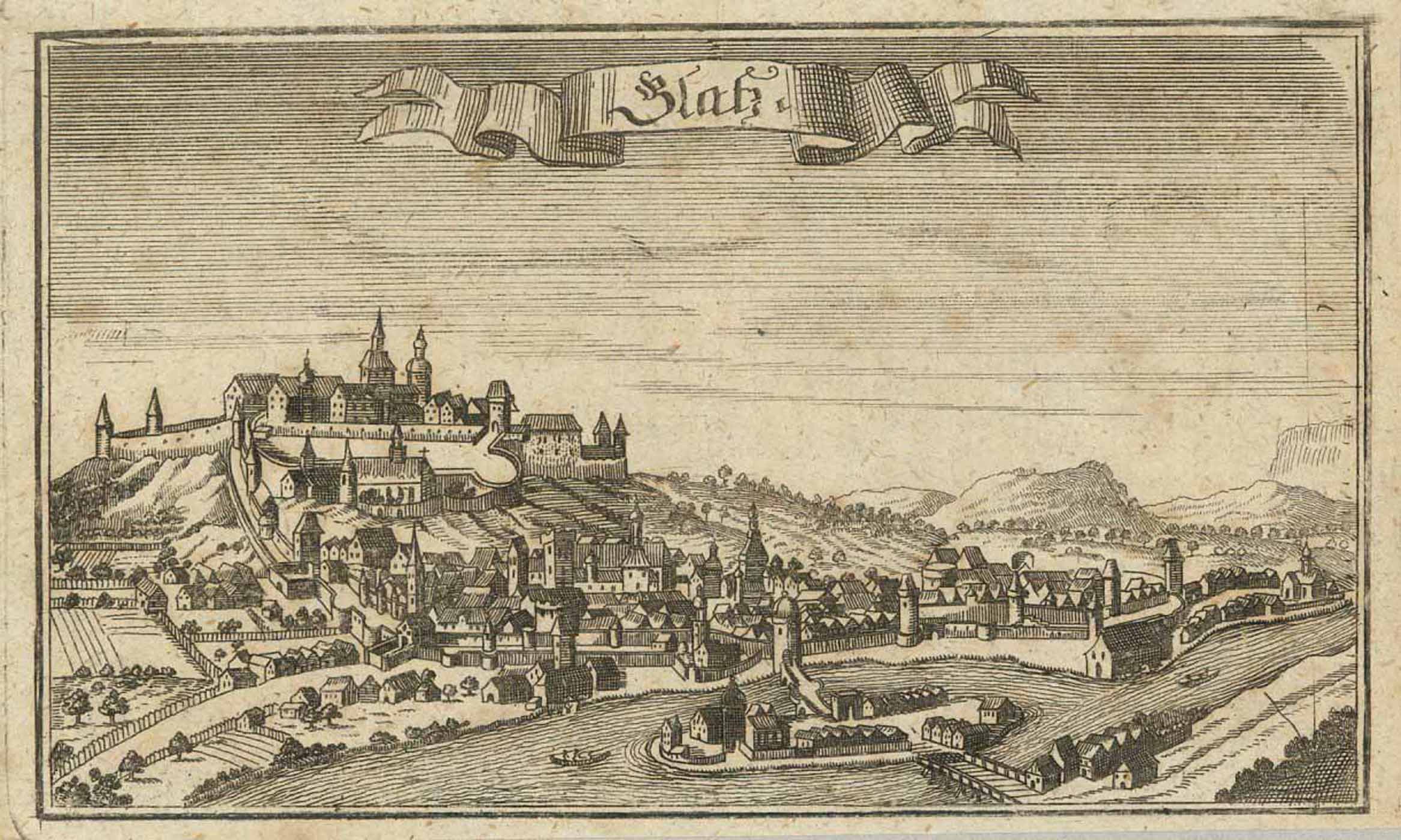 Gesamtansicht (‘Glatz’), Kupferstich v. J.D. Köhler, 1710, 9 x 14,5 cm
