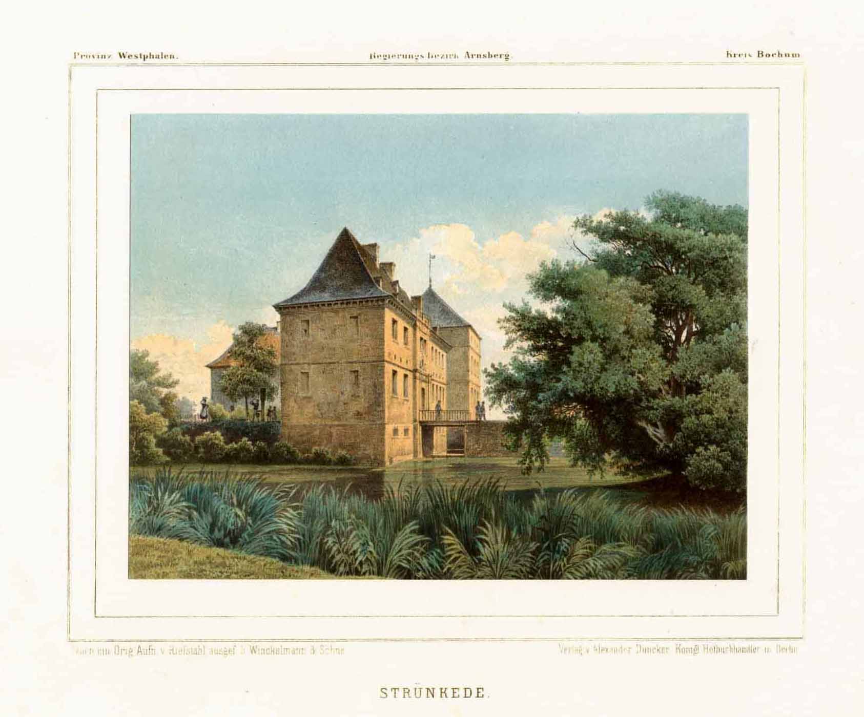 Schloß Strünkede, Farblithographie aus Duncker, 1865, 18,5 x 23,5 cm