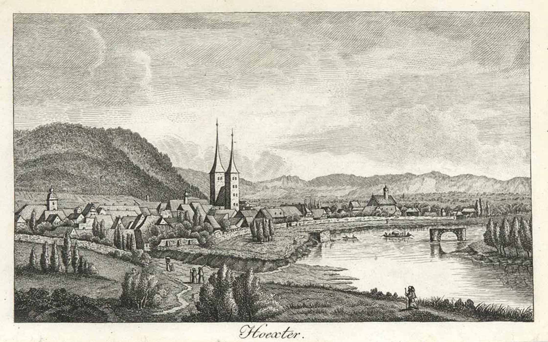 Gesamtansicht (‘Hoexter.’), Kupferstich b. Krieger, 1827, 9 x 14,5 cm