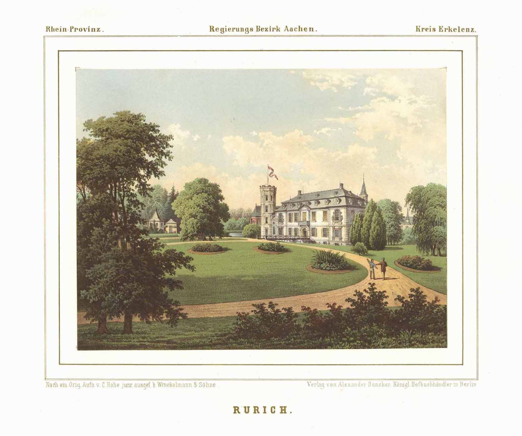 Schloss Rurich, Farblithographie aus Duncker, 1867, 18,5 x 23,5 cm