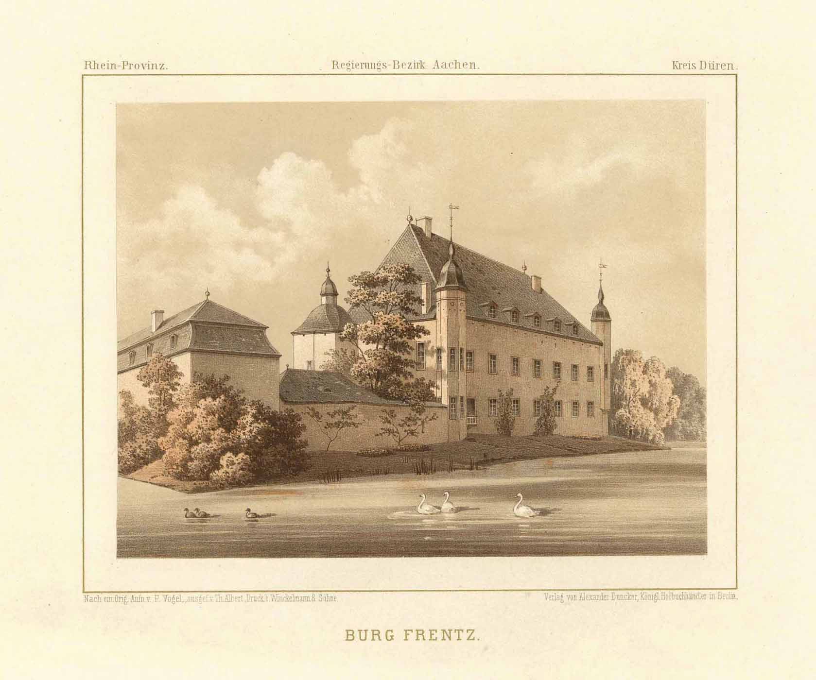 Burg Frenz / Frenzer Burg (‘Burg Frentz’), Farblithographie aus Duncker, 1867, 20,5 x 23,5 cm