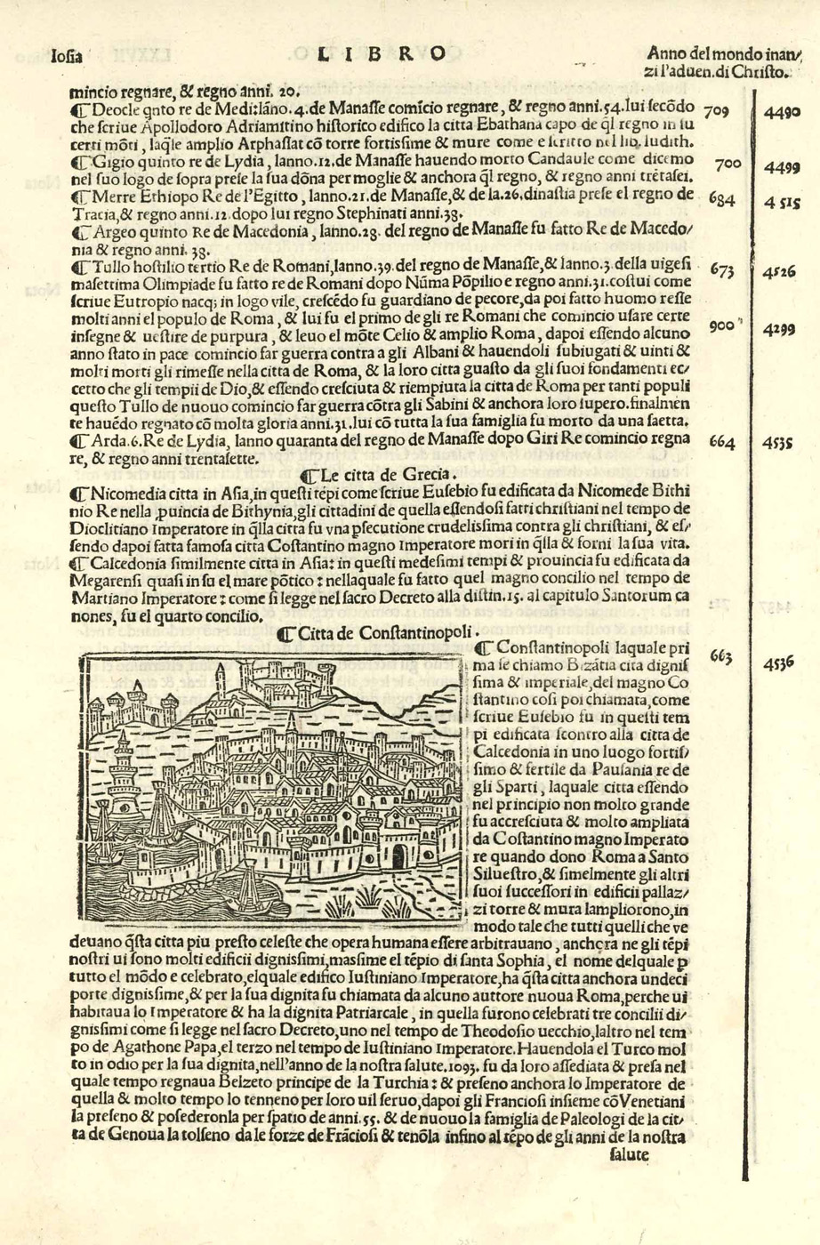 Gesamtansicht (‘Citta de Constantinopel’), Holzschnitt aus Supplementrum chronicarum b. Jacobus Philippus (Foresti) de Bergamo, 1553, 6,5 x 9 cm