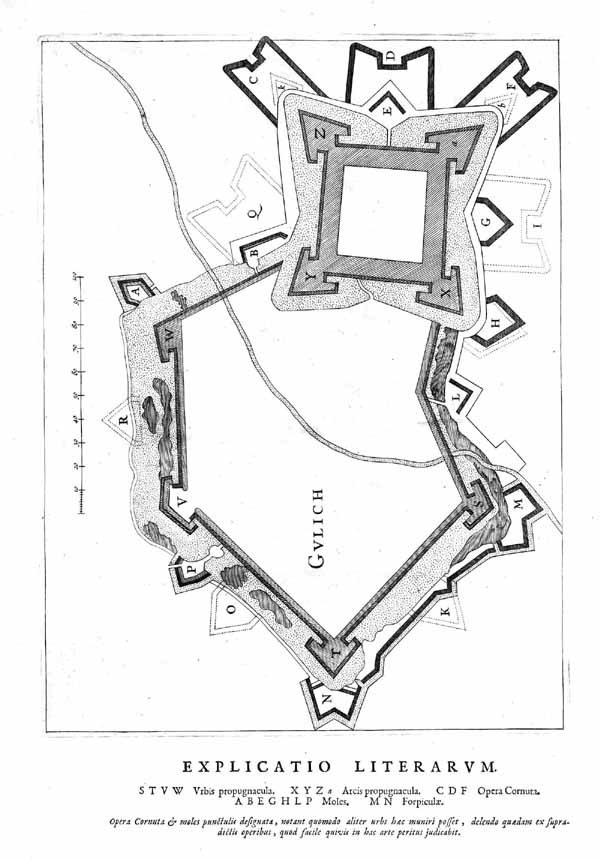 Befestigungsplan von Stadt und Zitadelle (‘Gvlich’), Kupferstich b. Blaeu in Amsterdam, 1649, 31,5 x 23,5 cm