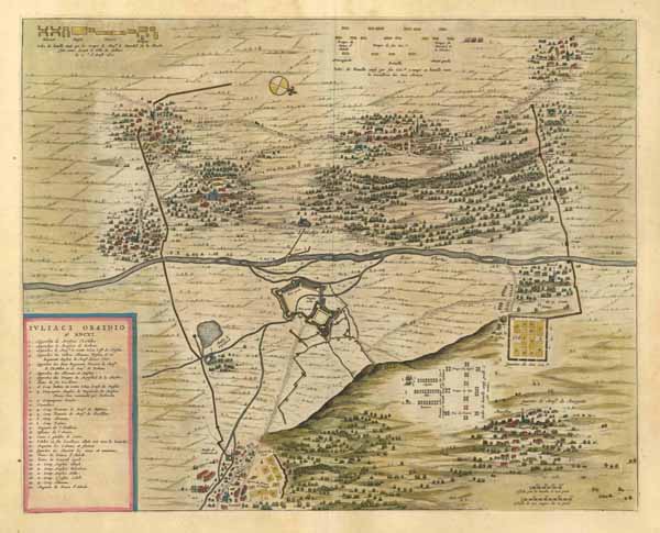 Befestigungsplan von Stadt und Zitadelle (‘Ivliaci Obsidio A°. MDCXI.’), altkolorierter Kupferstich b. Blaeu in Amsterdam, 1649, 42 x 52 cm