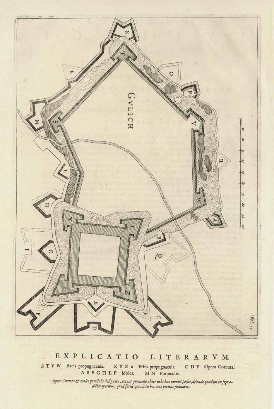 Befestigungsplan von Stadt und Zitadelle (‘Gvlich – Explicatio Literarum …’), Kupferstich b. Blaeu in Amsterdam, 1649, 36,5 x 24 cm