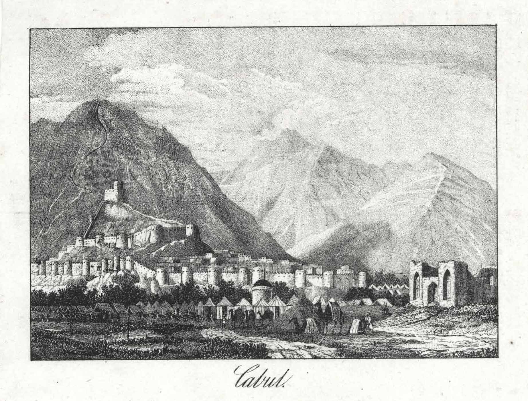 Gesamtansicht (‘Cabul.’), anonyme Lithographie, 1842, 12 x 15,5 cm