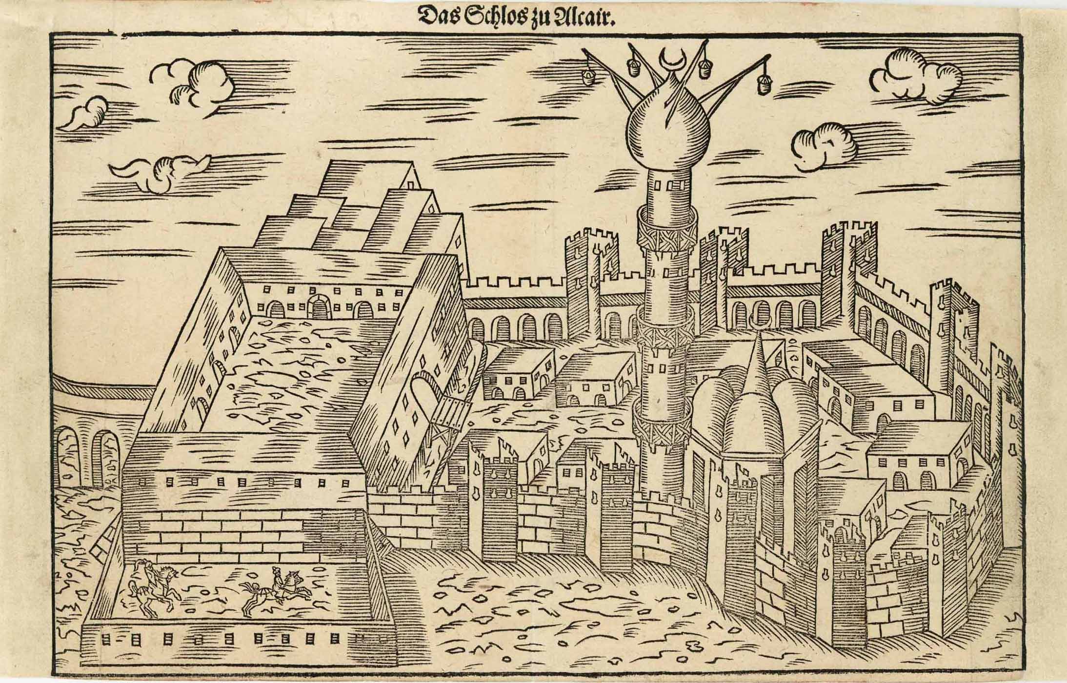 Zitadelle von Saladin / Salah ad-Din (‘Das Schlos zu Alcair’), Holzschnitt b. Johann Helffrich in Leipzig, 1579, 20 x 29,5 cm