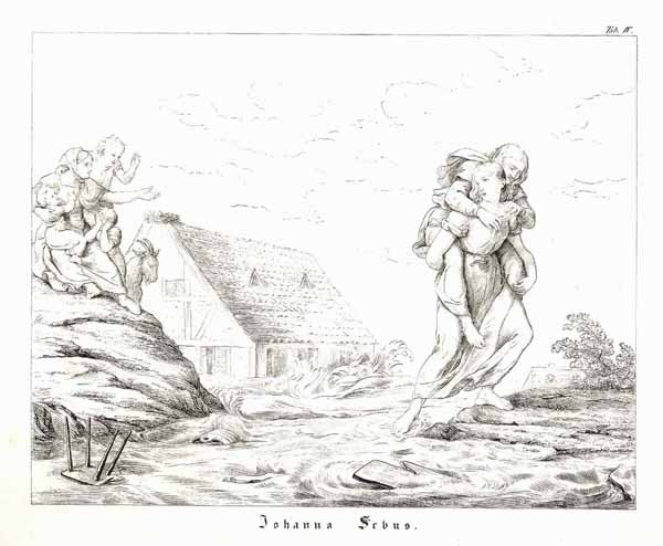 Johanna Sebus bei der Rettungstat im Jahre 1809 (‘Johanna Sebus’), Lithographie, 1832, 16,5 x 21,5 cm