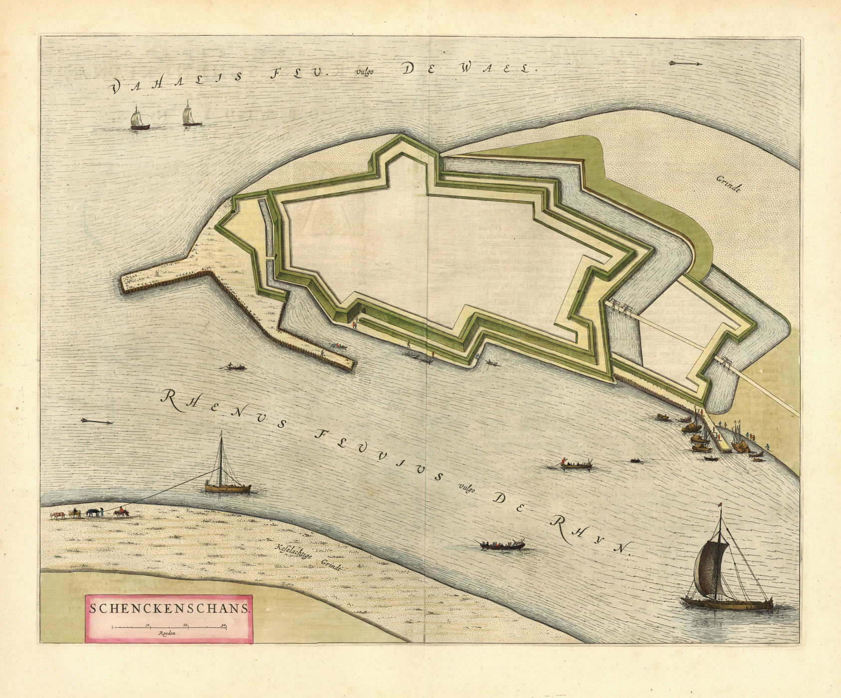 Befestigungsplan (‘Schenckenschans’), altkolorierter Kupferstich b. Blaeu in Amsterdam, 1649, 42,5 x 53 cm