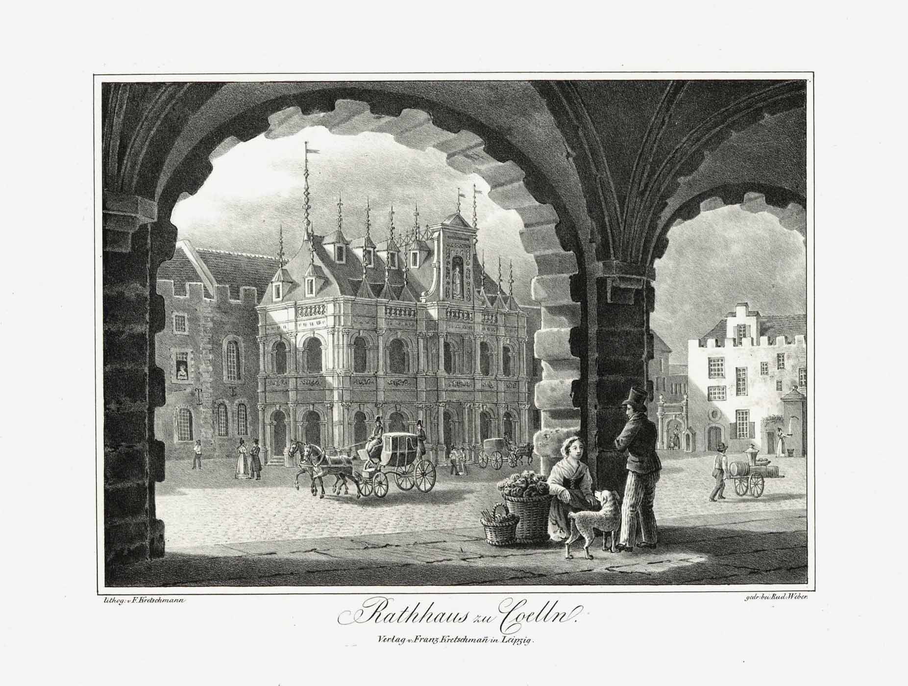 Rathaus (‘Rathaus zu Coelln.’), Lithographie v. F. Kretschmann gedr. b. Rud. Weber b. Franz Kretschmann in Leipzig, um 1825, 21 x 29 cm