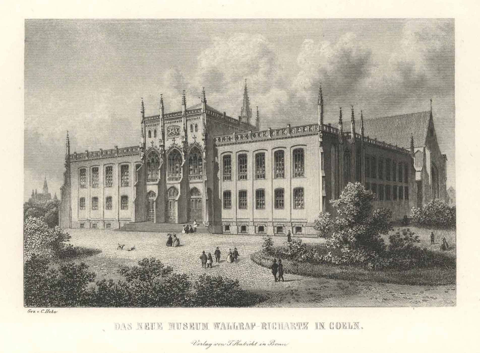 Das Haus wurde nach den Plänen des Kölner Architekten Josef Felten (1799-1880), einem Freund von Richartz, ab 1854 gebaut. – Sieben Jahre später, 1861, wird das Wallraf-Richartz-Museum eröffnet. – In den Bombennächten des Jahres 1943 wird das Museum völlig zerstört.
