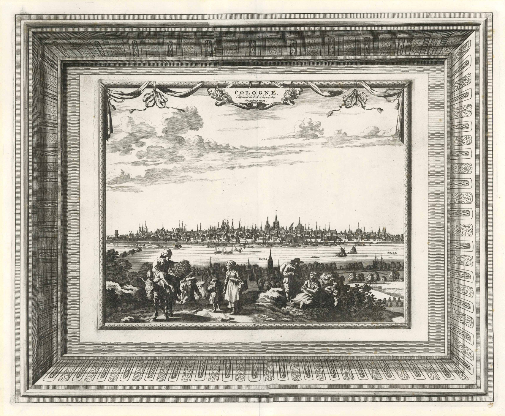 van der Krogt, Koeman’s Atlantes Neerlandici, Vol. IV-2, 2095 (diese Ausgabe mit Barockrahmen wird hier nicht erwähnt); Sievers, Köln von seiner schönsten Seite, Nr. 57. – Sehr seltene Ansicht aus der “La Galérie Agréable Du Monde” von Pieter van der Aa, die in nur 100 Exemplaren verlegt wurde.
