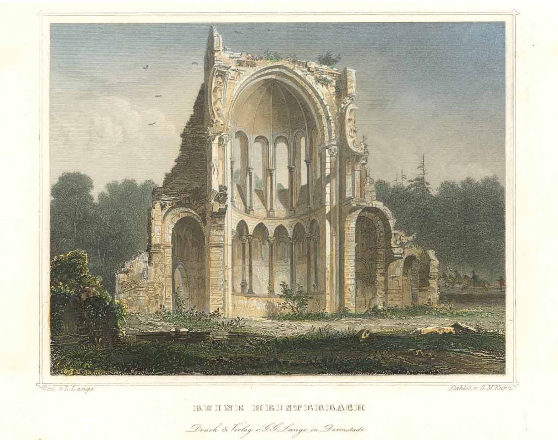 Ruinen der Zisterzienserabtei, kolorierter Stahlstich v. Kurz n. Lange, 1846, 12,5 x 15 cm