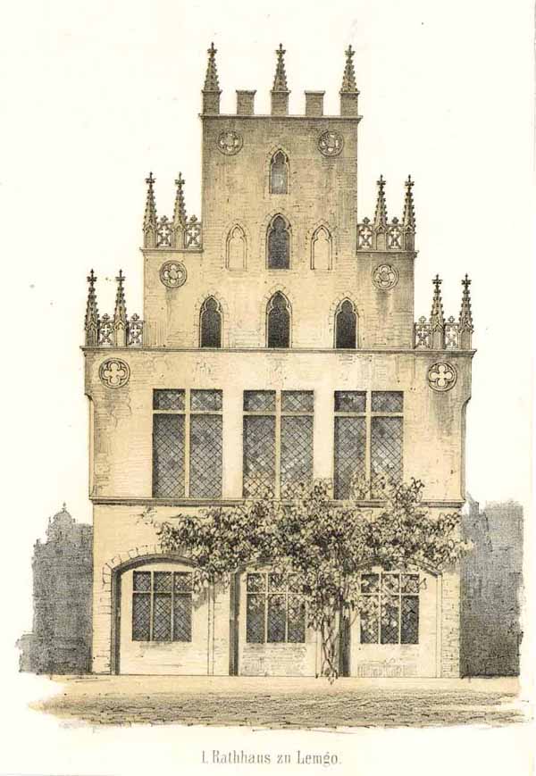 Rathaus (‘Rathaus zu Lemgo’), getönte Lithographie, um 1865, 18,5 x 13 cm