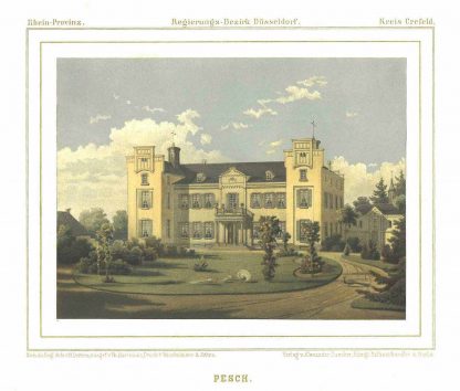 Schloß Pesch von der Westseite, Farblithographie aus Duncker, 1869, 20,5 x 23,5 cm