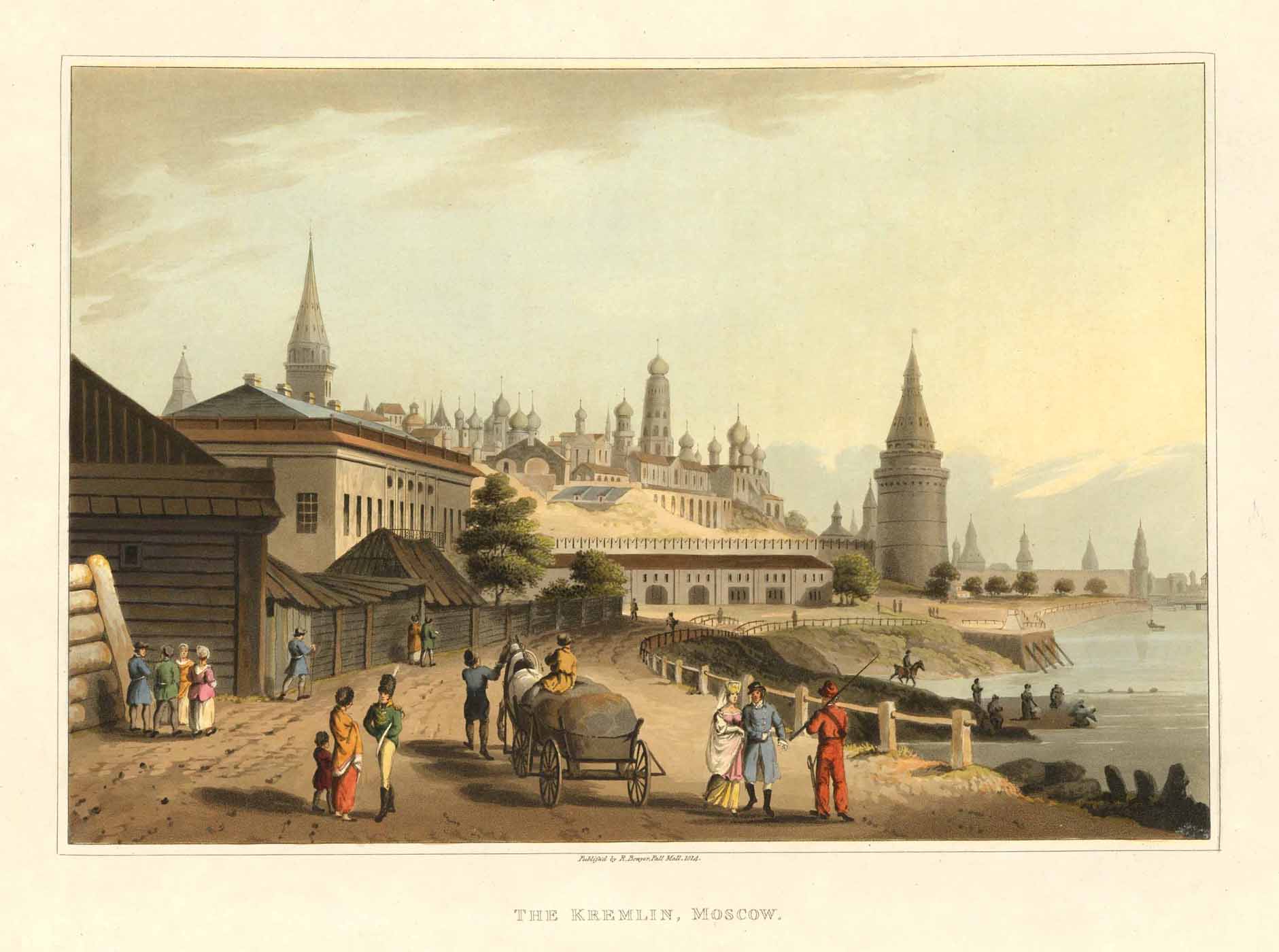 Kreml (‘The Kremlin, Moscow.’), altkolorierte Aquatinta b. R. Bowyer in London, dat. 1814, 24 x 32,5 cm