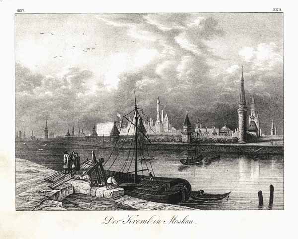 Kreml (‘Der Kreml in Moskau’), Lithographie aus Karlsruher Unterhaltungsblatt … b. C.F. Müller in Karlsruhe, dat. 1837, 16 x 20,5 cm