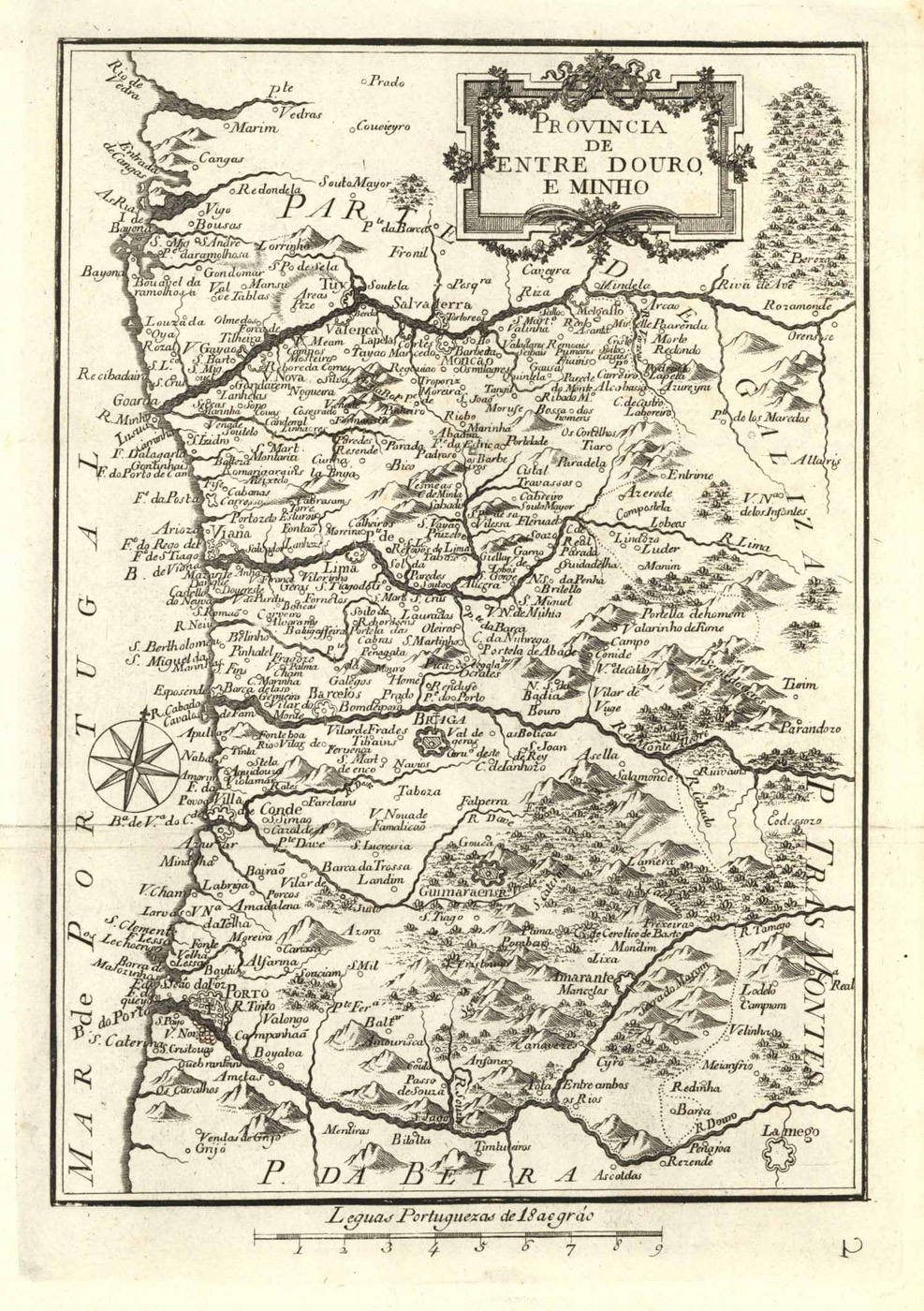‘Provincia De Entre Douro E Minho’: Kupferstich b. Antonio Alvarez Ribeiro in Porto, 1789, 25 x 16,5 cm