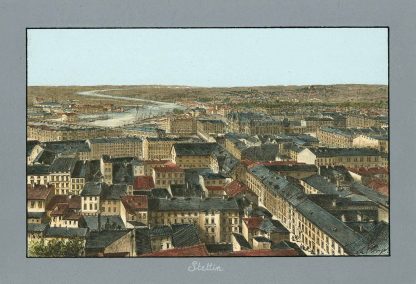 Gesamtansicht; Aufsicht (‘Stettin’), gouachierter Holzstich mit grau getuschtem Rand n. Hubert Clerget, 1885, 15,5 x 23 cm
